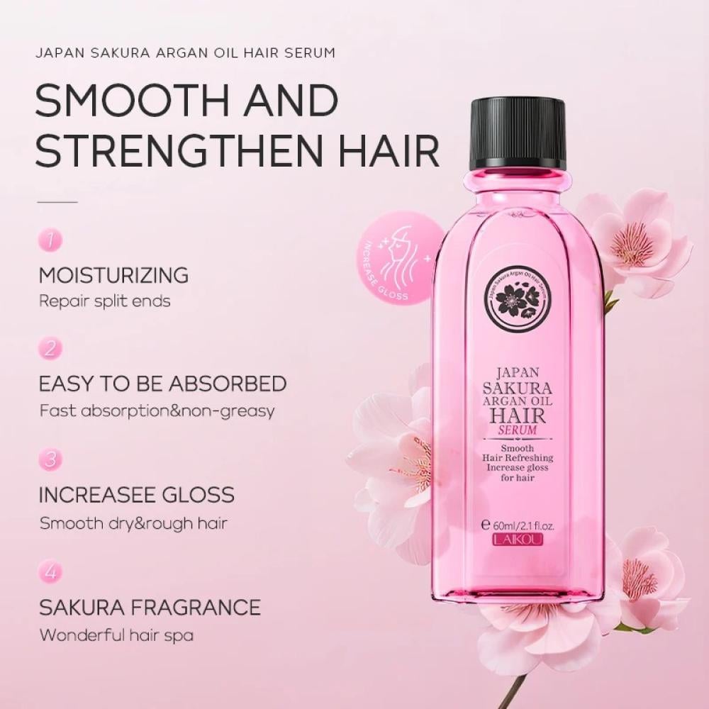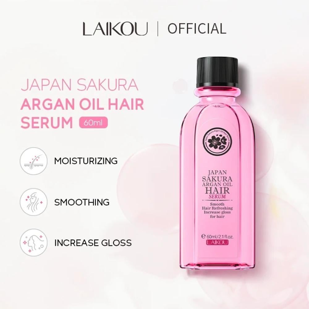 - Laikou ساكورا يعمل على تنعيم الشعر وجعله أكثر مرونة ولمعاناً، مما يمنحك شعراً حيوياً وصحياً.